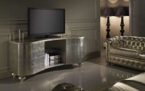 Шкаф для ТВ в серебристой отделке с открытыми полками - mdvh/0098