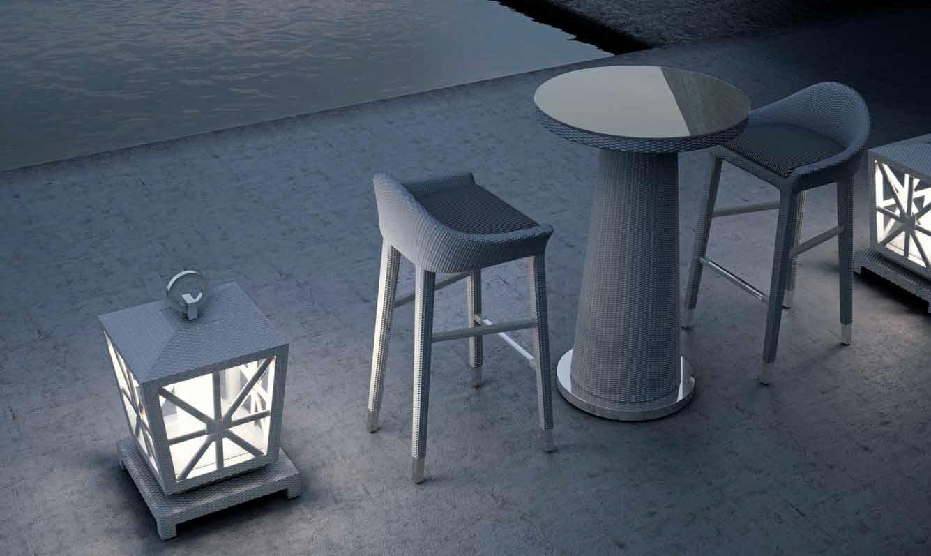 Светло-голубой барный столик с высокой опорой в вязаной обивке - smn/319